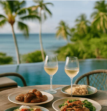 Flavours of Vanuatu: daily breakfasts + five shared meals, including Dinner Under the Stars - a Melanesian feast with cultural performance.